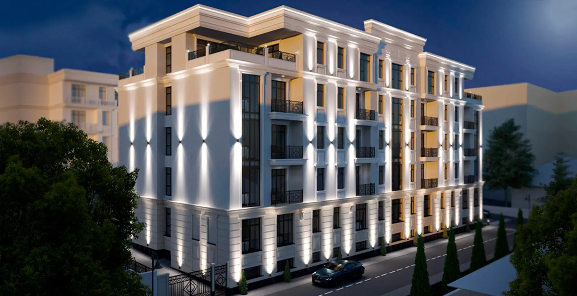 Blocul Rezidențial este amplasat într-o regiune liniștită din Chișinău, dar totodată nu departe de centrul capitalei. Pâna în centrul capitalei sunt de parcurs doar 2,9 km. Arhitectura Complexului Rezidențial are