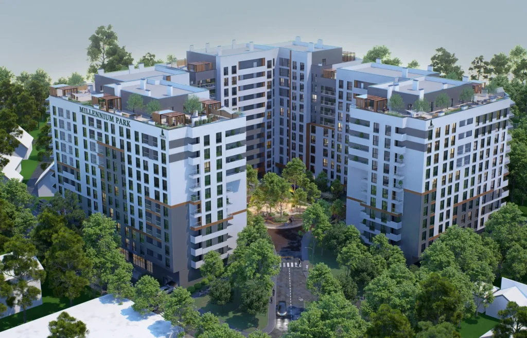 Proiectul constă din trei blocuri rezidențiale, oferind un total de 510 apartamente. De la unități locative spațioase cu 1, 2, 3 camere până la penthouse-uri spectaculoase cu vedere panoramică asupra