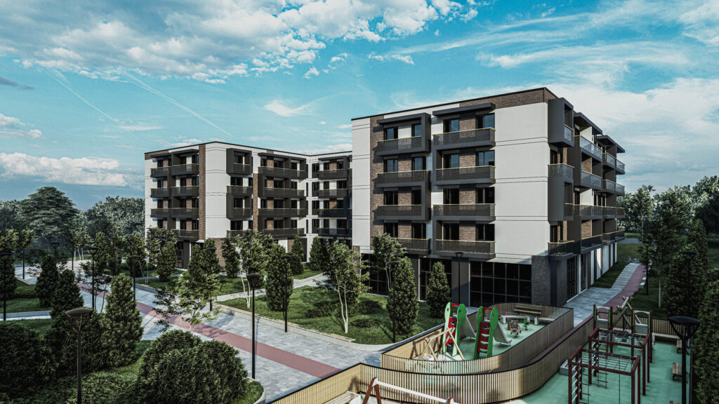 Proiectul include zone verzi generoase, terenuri de joacă moderne, pistă de alergare și parcări subterane, toate integrate armonios într-un mediu sigur și prietenos pentru familie. Copiii beneficiază de spații special amenajate pentru joacă, în timp ce părinții se bucură de confortul supravegherii și relaxării într-un cadru bine organizat.